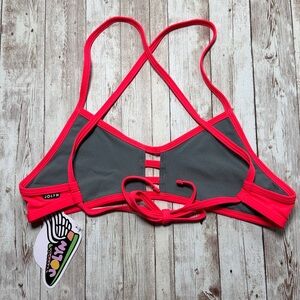 JOLYN Women's Tomcat Solid Bikini Top Strawberry Red sz Medium Cross Back UPF50