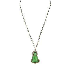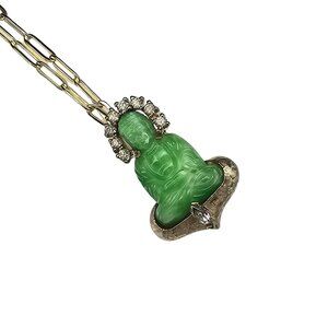 JOMAZ JOSEPH MAZER Signed Vtg Faux Jade Rhinestone Peking Glass Buddha Brooch