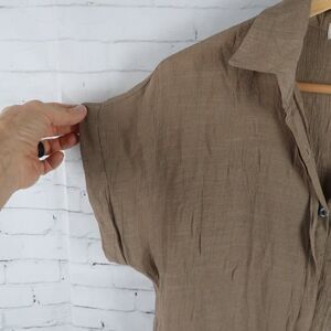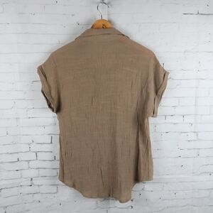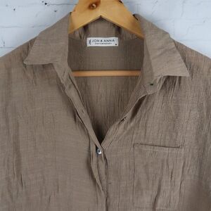 TAN SHORT SLEEVE 1/4 BUTTON DOWN TOP SIZE MEDIUM BY JON & ANNA CONTEMPORARY PRE OWNED NO FLAWS