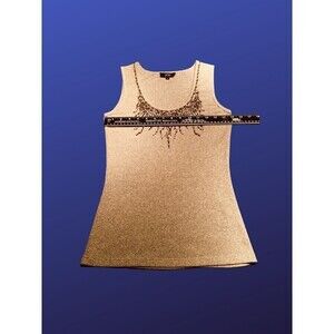 JON Tank Top, Beaded Metallic Sparkle, Scoop Neck Shell, GOLD, Size Small. Pre-owned Vintage, EXCELLENT condition. Please check measurements for accurate fit.