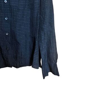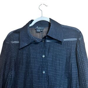 JON Top Womens 10 Black Stripe Silk Blend Button Up Long Sleeve Sheer Blouse