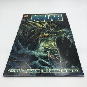 JONAH Comic Book Color Illustrated Kingstone Comics Collectible. Comic book is pre-owned. Please see all photos for visible condition. 2020 USA. ISBN 978-1-936-164820. Sticker residue on back left and pen marking. Art Ayris Danny Bulanadi Fabrizio Guerra Zach Matheny. Approximately 10 x 6.5. Small bend at top corner - see photo.