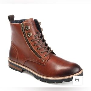 Dapper details define this smart look, with a classic round-toe and an exposed zipper at the side.