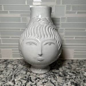 JONATHAN ADLER Utopia Caesar Cornelia Stoneware Vase Reversible Faces Light Gray