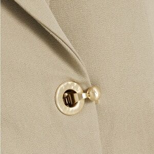 Elevate your style with this elegant beige blazer. Perfect for any occasion, it offers a sophisticated look with a comfortable fit. Has a bit of stretch. New with Tags. Shell is 96% cotton 4% elastic.