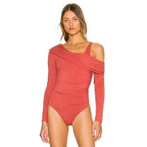 JONATHAN SIMKHAI Gianna Matte Long Sleeve One Shoulder Bodysuit Brick L NWT $235