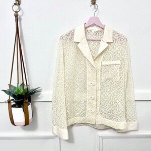 JONATHAN SIMKHAI Janice Lace Long Sleeve Button Front Shirt Ivory Size S