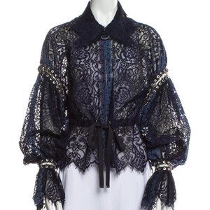 Brand new with tags authenticity guaranteed. Never worn. This Jonathan Simkhai Grommet Lariat Lace Jacket features grommet sleeve details and scalloped trim.