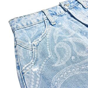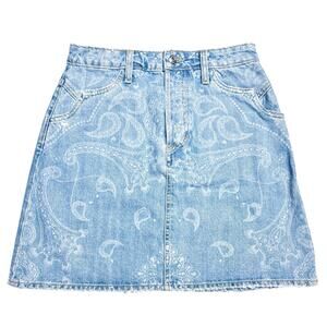 JONATHAN SIMKHAI Light Indigo Paisley Print Denim Skirt Size 27 Western Cowgirl