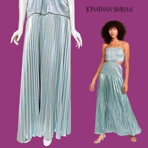 JONATHAN SIMKHAI |NEW| Glam DAISY Cut-Out Waist Pleated Maxi Gown 6. Jonathan Simkhai's Daisy maxi gown in aqua is the ultimate formal gala choice or vacation-ready style. Designed to fall fluidly down the figure, it features a square neck and bold cutouts at the bodice, accented with slender straps. You will love this dress! See pictures for all details and the Tale Chart to size this dress. Specific measurements are provided upon request.