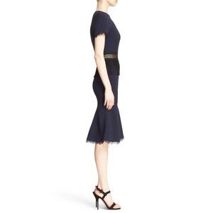 JONATHAN SIMKHAI Navy Blue Black Crochet Fringe Flare Bodycon Cocktail Size 10