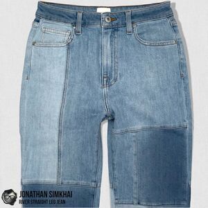 Jonathan Simkhai River Straight Leg Denim Patchwork Jeans in Pale Blue Size 4 / 27