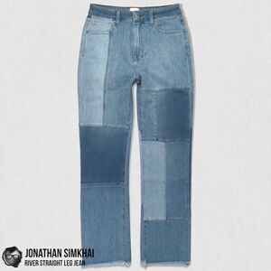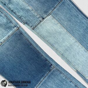 JONATHAN SIMKHAI RIVER STRAIGHT LEG DISTRESSED PATCHWORK JEANS IN INDIGO BLUE 27