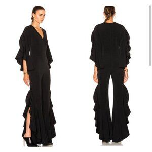 JONATHAN SIMKHAI Ruffle Sleeve Combo Jumpsuit in Black 0 NWOT $995