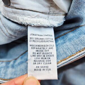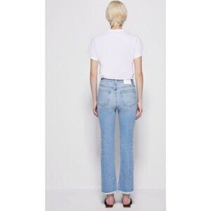 JONATHAN SIMKHAI Made in USA Straight-Leg Frayed Hem Jean Medium Washed Blue Organic Cotton Blend