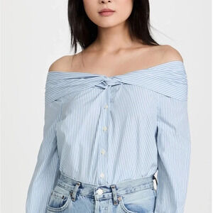 JONATHAN SIMKHAI Striped Off-The-Shoulder Button-Up Top