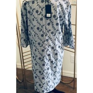 Jones Monochromatic Floral Hi-Low Dress Bell Sleeve Gray Black Size 12 NWT