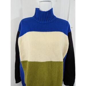 Wowwww! This fabulously oversized and roomy tunic sweater is from Jones New York, in heavyweight 100% fine Australian wool, made in Australia! Color blocked in black, cream, blue and green, it features a mock turtleneck and bold, block style! Apres ski? Or perfect with a pair of leggings! Size M, Excellent! Superb EUC Condition! **ABSOLUTELY GUARANTEED CONDITION: EUC MINTY-EXCELLENT TO LIKE-NEW, by Lily @HauteClub!*** *Measurements always available on request!*