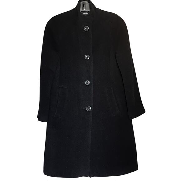 JONES NEW YORK BLACK WOOL NYLON ALPACA FULL LENGTH WINTER OVER COAT SIZE 4