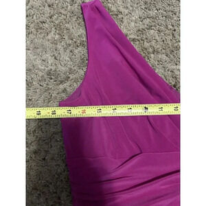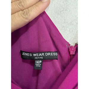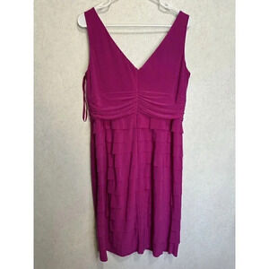 JONES NEW YORK Barbie Pink Sheath Layered Tier VNeck Stretch Jersey Dress Sz 14P