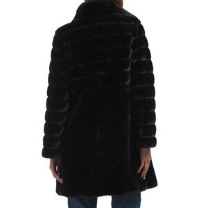 JONES NEW YORK Black Grooved Faux Fur Coat