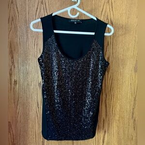 JONES NEW YORK Black Sequin Fitted Tank Top Scoop Neck Sleeveless Size Small