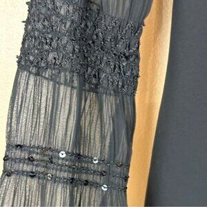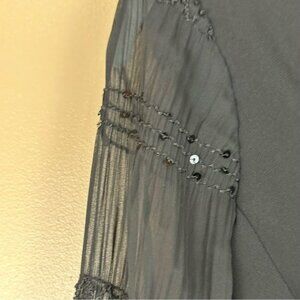 Beautiful black dress in excellent used condition - no damage or flaws. The sleeves are of sheer gathered fabric with sequins. Perfect for dressier occasions.