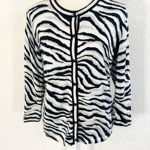 JONES NEW YORK Black White Animal Zebra Print Button Up Cardigan Size Medium