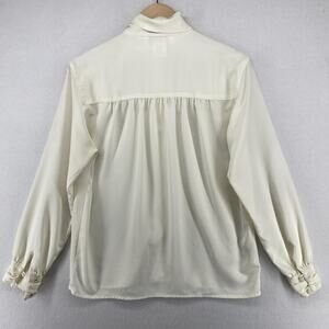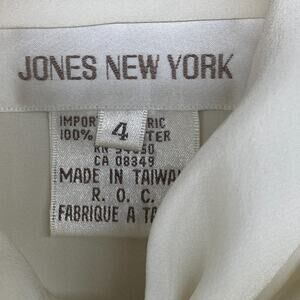 JONES NEW YORK Blouse 4 Crepe Shirred Hidden Button Mock Long Sleeve Ivory VTG