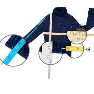 JONES NEW YORK Blue/Wht Marled Merino Wool Blend Raglan Sleeve Crop Turtleneck M