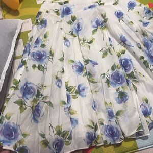 Elegant white skirt with blue floral patterns, perfect for any occasion. Add a touch of sophistication to your wardrobe.
