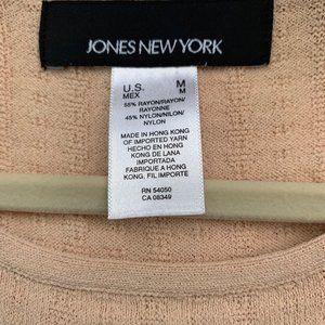 This peach textured sleeveless top by Jones New York is made with imported yarn and is super versatile. It also has a lot of stretch to it. 55% Rayon / 45% Nylon - Size Medium
