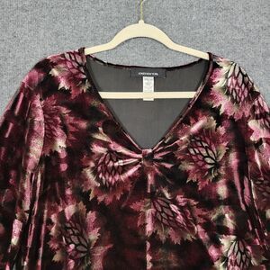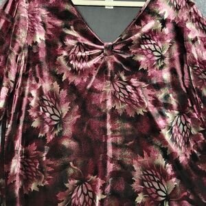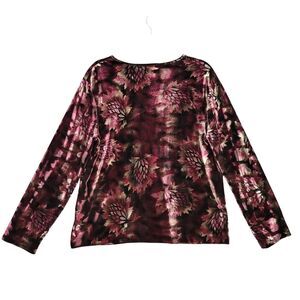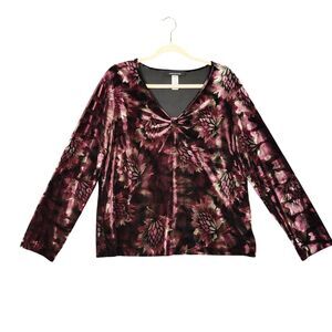 JONES NEW YORK Pink Dark Floral Velvet Ruched Whimsigoth Romantic Top SIZE XL