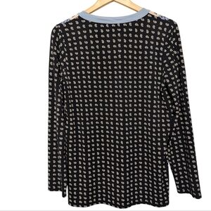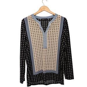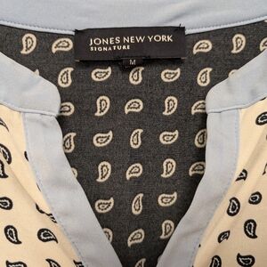 JONES NEW YORK Print Split Neck Draped Packable Navy Blue Peasant Blouse