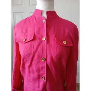 JONES NEW YORK SIGNATURE 100% Linen Button Up Shirt Women's M Top Blouse Pink