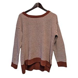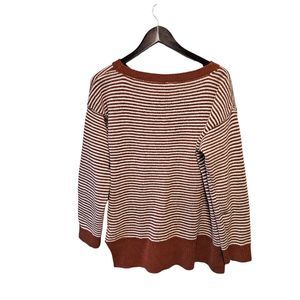 JONES NEW YORK SIGNATURE Rust White Striped Chenille Sweater LARGE