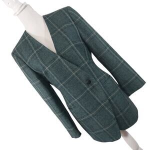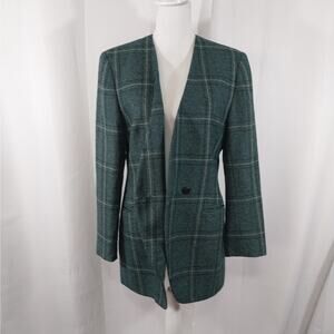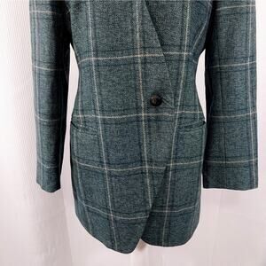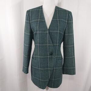 From Jones New York comes this fine 100% wool jacket, blazer, in a soft green, blue and cream plaid! Featuring a fone button front, shoulder pads, and it's fully lined in emerald green poly satin! A beautiful jacket! Size 12, Excellent! Superb EUC Condition! **ABSOLUTELY GUARANTEED CONDITION: EUC MINTY-EXCELLENT TO LIKE-NEW, by Lily @HauteClub!***