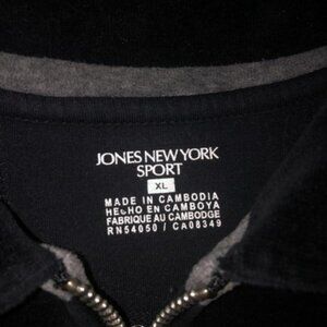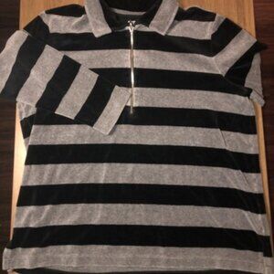 JONES NEW YORK SPORT Black Gray Striped 1/4 Zip XL Fine Corduroy Sweater Womens