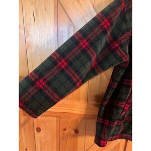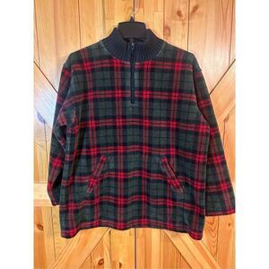 JONES NEW YORK SPORT PETITE SZ Medium Red Black Green Plaid Fleece Zip Pullover Sweater pit to pit 23.5” length 27.5” Pockets (4312)
