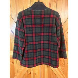 JONES NEW YORK SPORT PETITE SZ M Red Black Green Plaid Fleece Zip Pullover Sweat