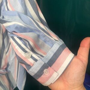 JONES NEW YORK STRIPED WRAP BLOUSE