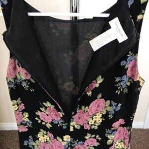 JONES NEW YORK SleevelessTea Length Dress Black/Floral Sz 6 EUC