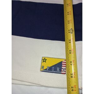 JONES NEW YORK Sport: White/Red/Blue/Yellow Striped Rugby Hoodie - Men's Size M