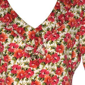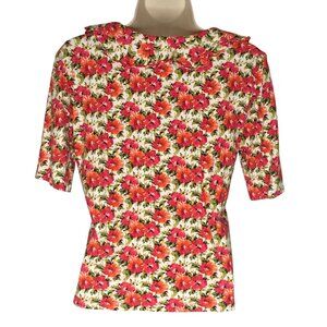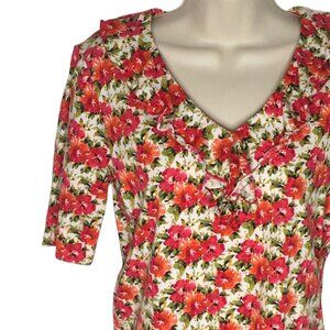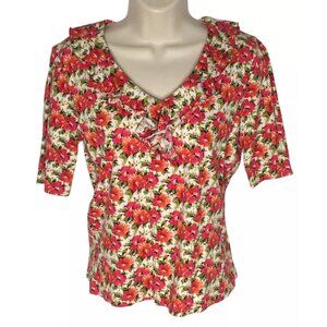 JONES NEW YORK Sport Women's Floral Cotton Blouse 3/4 Sleeve Ruffle Sz Small