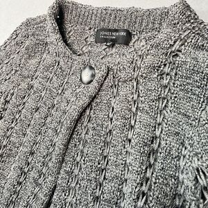 JONES NEW YORK Sweater Womens Sz Small Ribbon Open Knit One Button Cardigan Gray