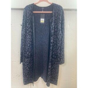 JONES NEW YORK WOMENS MED OPEN FRONT LEOPARD PRINT CARDIGAN KNEE LENGTH NEW