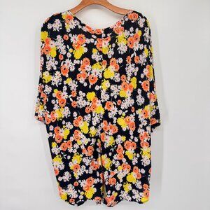 JONES NEW YORK Woman Floral Print 3/4 Sleeve Tunic Top Size 3X Navy plus