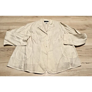 JONES NEW YORK Women 18W Blouse Linen Button Front Cream Lagenlook