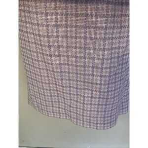 This Jones New York women's 2-piece skirt suit in size 6 is a stylish and professional outfit perfect for a party, cocktail event, or business meeting. The pink plaid houndstooth pattern adds a pop of color to the classic and timeless design. The jacket features a peak lapel and a single-breasted button front, while the skirt is lined for added comfort. Made of a blend of cotton, viscose, rayon, acrylic, and polyester, this suit exudes quality and sophistication. Easy to care for with a dry clean only requirement, this suit is a must-have addition to any woman's wardrobe.