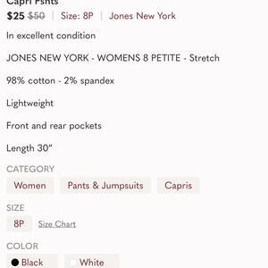 JONES NEW YORK Women’s 8P Black White Capri Pant